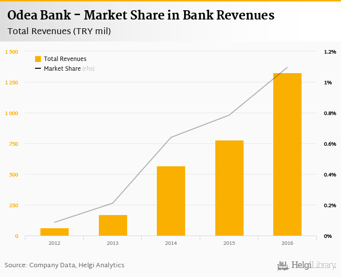 Odea Bank generated total banking revenues of TRY 1,327 mil in 2016, up 70.6% compared to the previous year.