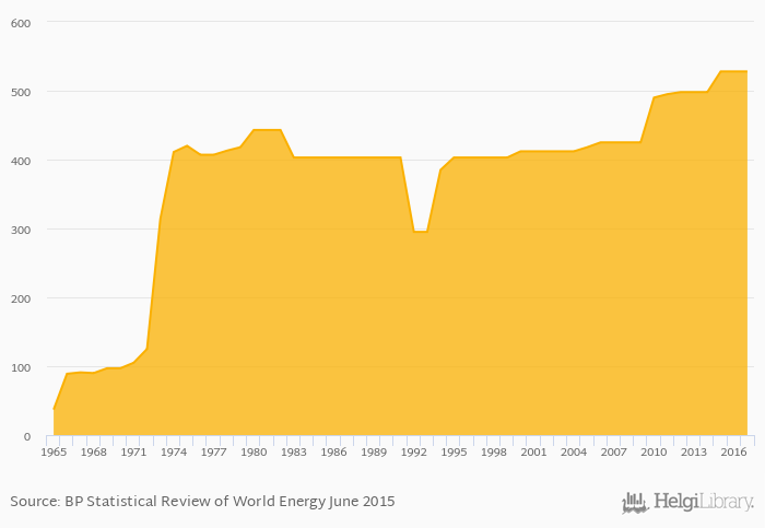 Oil refinery capacities rose 0% to 528 '000 barrels daily in Greece in 2017, according to the BP Statistical Review of World Energy.