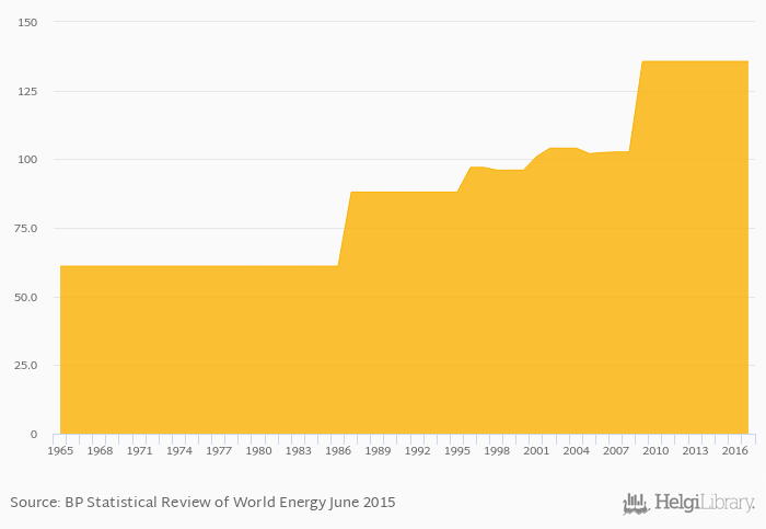 Oil refinery capacities rose 0% to 136 '000 barrels daily in New Zealand in 2017, according to the BP Statistical Review of World Energy.