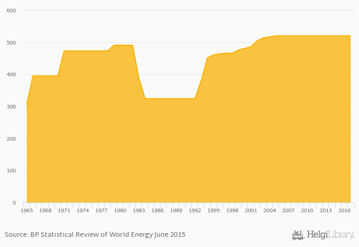 Oil refinery capacities rose 0% to 520 '000 barrels daily in South Africa in 2017, according to the BP Statistical Review of World Energy.
