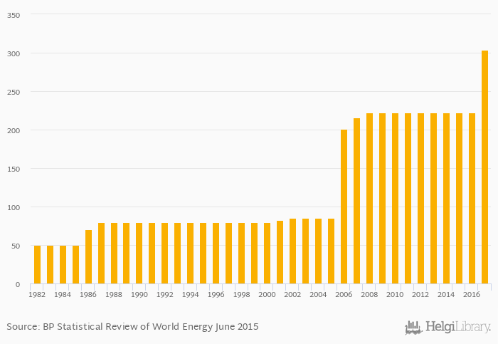 Oil refinery capacities rose 36.9% to 304 '000 barrels daily in Oman in 2017, according to the BP Statistical Review of World Energy.