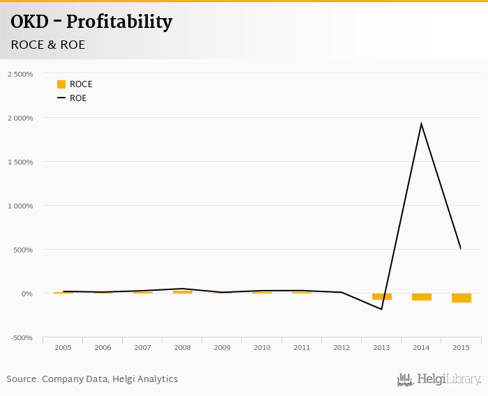 OKD made a net profit of CZK -6,828 mil in 2015, up 32.4% compared to the previous year. Historically, between 2005 and 2015, the company's net profit reached a high of CZK 10,040 mil in 2008 and a low of CZK -19,659 mil in 2013.