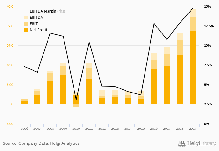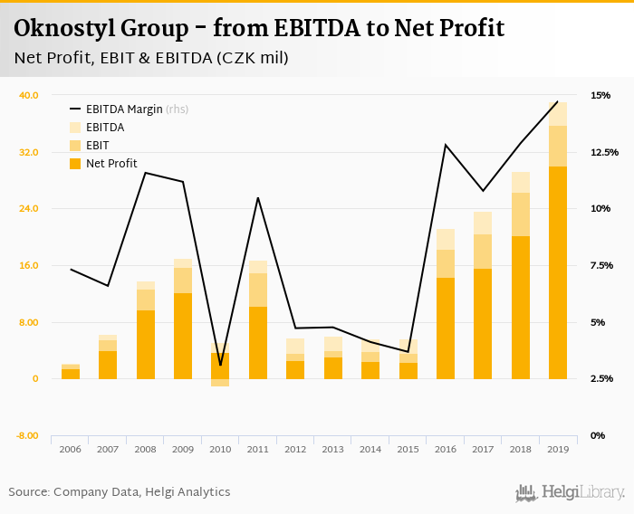Oknostyl Group made a net profit of CZK 30.0 mil with revenues of CZK 266 mil in 2019, up by 48.3% and up by 16.7%, respectively, compared to the previous year. This translates into a net margin of 11.3%.
