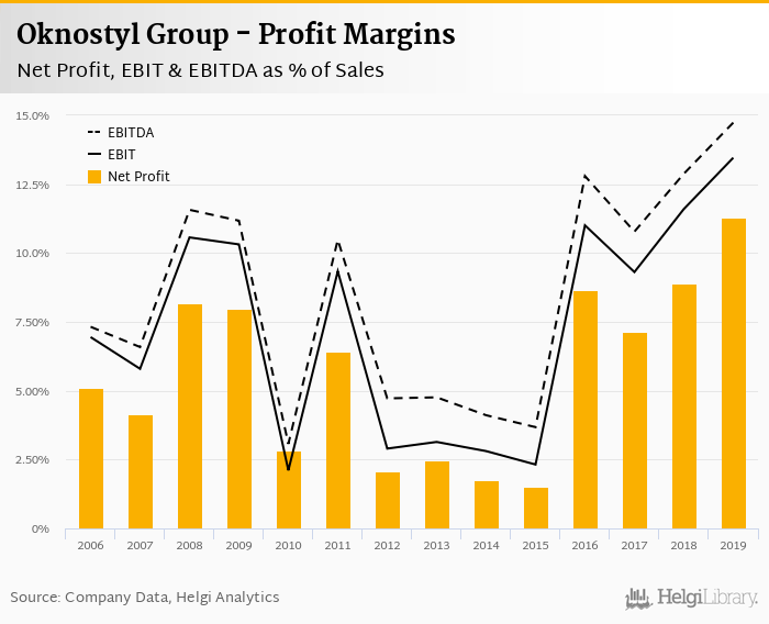 Oknostyl Group made a net profit of CZK 30.0 mil with revenues of CZK 266 mil in 2019, up by 48.3% and up by 16.7%, respectively, compared to the previous year.