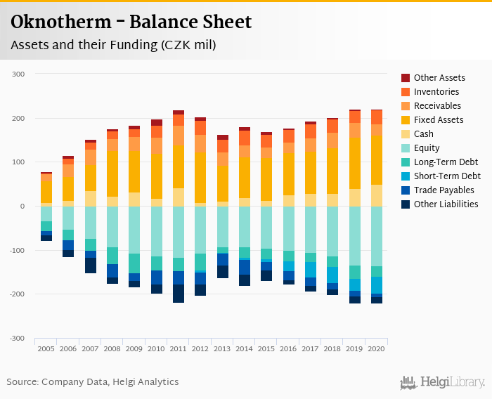 Oknotherm's total assets reached CZK 221 mil at the end of 2020, down 0.023% compared to the previous year.
