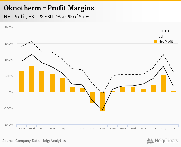 Oknotherm made a net profit of CZK 1.16 mil with revenues of CZK 342 mil in 2020, down by 94.5% and down by 11.7%, respectively, compared to the previous year.