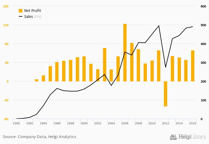 Historically, between 1990 and 2016, the company’s net profit reached a high of CZK 123 mil in 2006 and a low of CZK -53.1 mil in 2012. Over the last decade the firm's net profit decreased by an average of 6.01% a year.