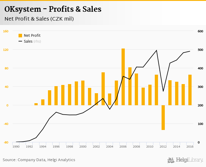 OKsystem made a net profit of CZK 66.0 mil in 2016, up 45.3% compared to the previous year. Total sales reached CZK 490 mil, which is up 1.65% when compared to the previous year.