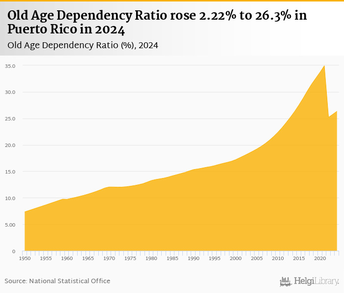 Old age dependency ratio rose 2.22% to 26.3% in Puerto Rico in 2024, according to the National Statistical Office.