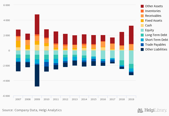 Net debt against equity is down 2.21 pp from five years ago (57.0%). The ratio against EBITDA decreased from -9.30x seen in 2014 to -18.4x.