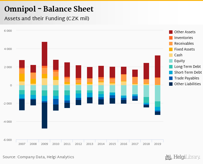 Omnipol's total assets reached CZK 3,275 mil at the end of 2019, up 33.7% compared to the previous year.