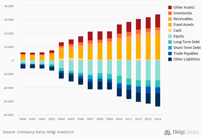 Current assets amounted to EUR 8,298 mil, or 24.5% of total assets while cash stood at EUR 649 mil at the end of 2014.