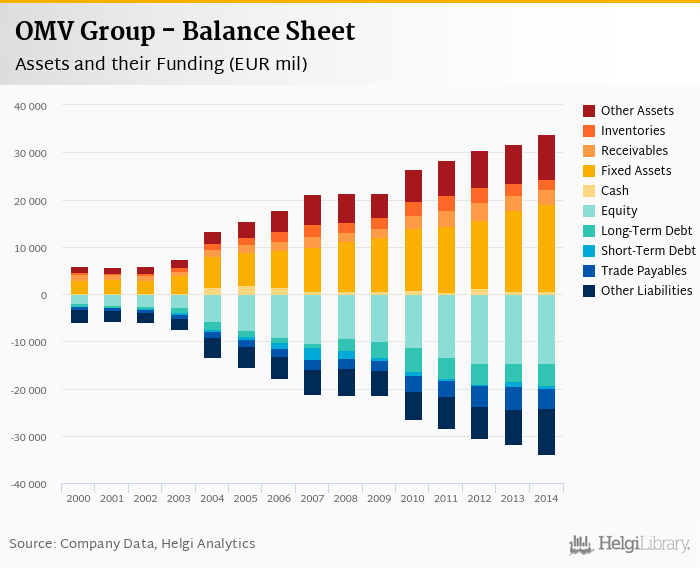 OMV Group's total assets reached EUR 33,938 mil at the end of 2014, up 6.56% compared to the previous year.