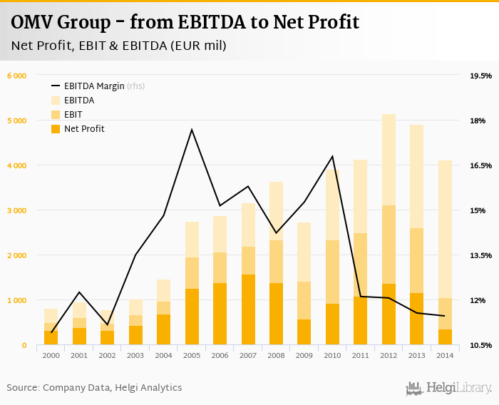 As far as OMV Group's peers are concerned, PKN posted net and EBITDA margin of -5.44% and -2.55%, respectively in 2014, MOL generated margins of 0.084% and 8.37% and OMV Petrom profit margin reached 9.76% on the net and 37.8% on the EBITDA level in 2019.