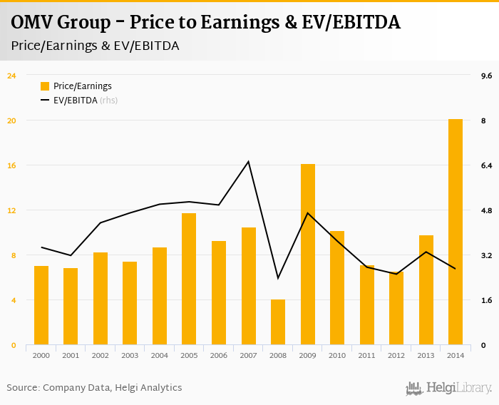 OMV Group stock traded at EUR 22.0 per share at the end 2014 translating into a market capitalization of USD 8,692 mil.