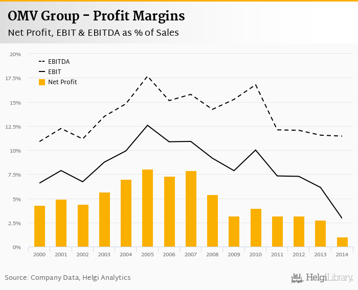 OMV Group made a net profit of EUR 357 mil with revenues of EUR 35,913 mil in 2014, down by 69.3% and down by 15.3%, respectively, compared to the previous year.