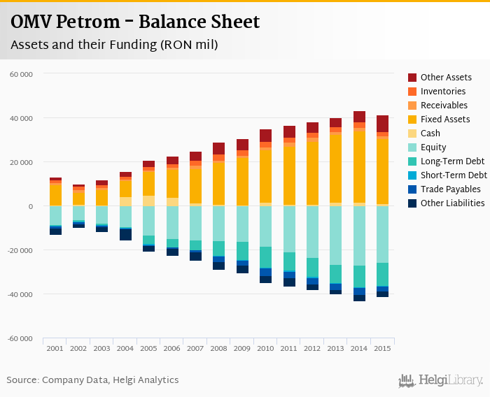 OMV Petrom's total assets reached RON 41,118 mil at the end of 2015, down 4.65% compared to the previous year.