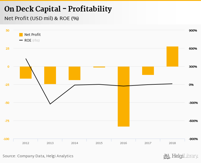 On Deck Capital made a net profit of USD 27.7 mil in 2018, up 340% compared to the previous year. This implies a return on equity of 9.71%.