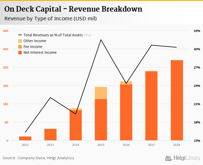 On Deck Capital generated total banking revenues of USD 351 mil in 2018, up 15.3% compared to the previous year.
