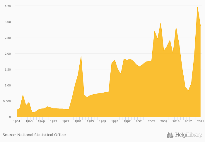 | Rwanda | kg | 1.32 | 1.27 | 1.13 | 1.21 | 3.03 | ||||||||||||||||