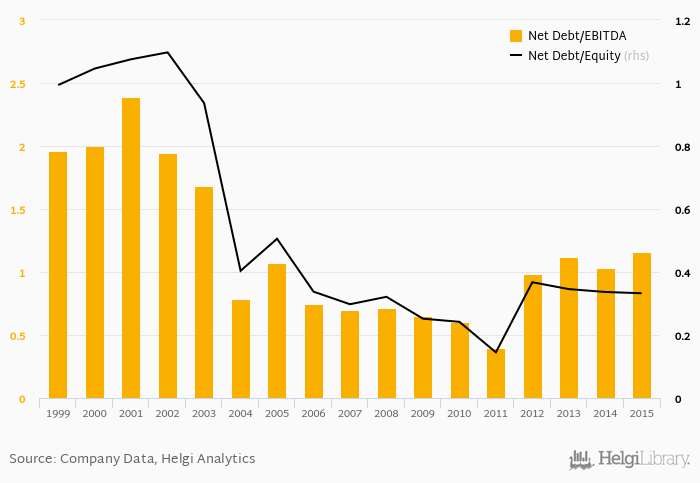 Historically, the firm’s net debt to equity reached a high of 1.10 in 2002 and a low of 0.145 in 2011 between 1999 and 2015. The average for the last five years was 0.305%.