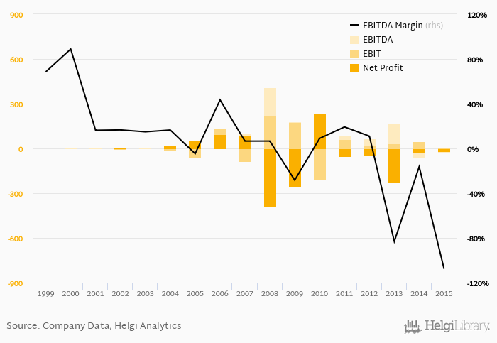 On the operating level, EBITDA reached EUR -15.0 mil, down 22.3% compared to the previous year. Over the last five years, company's EBITDA has risen 0% a year on average.