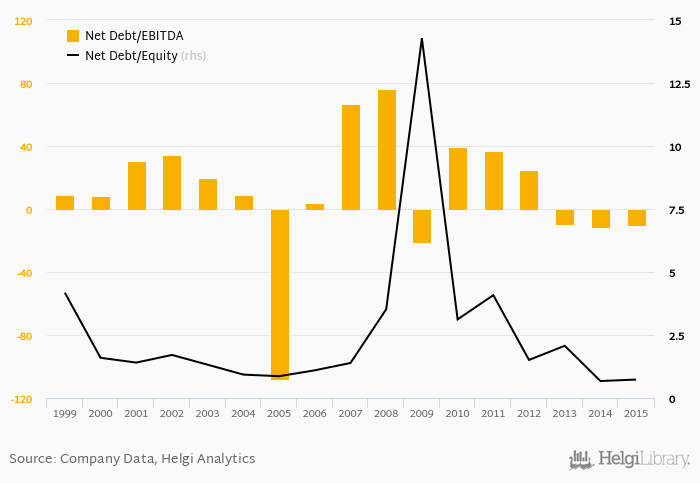 Historically, the firm’s net debt to equity reached a high of 14.3 in 2009 and a low of 0.673 in 2014 between 1999 and 2015. The average for the last five years was 1.81%.