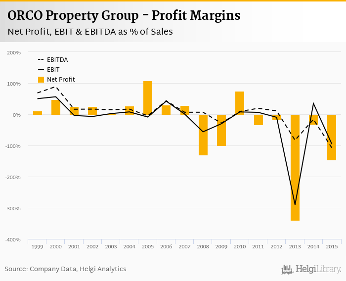 ORCO Property Group made a net profit of EUR -20.5 mil with revenues of EUR 14.0 mil in 2015, up by 13.3% and down by 81.4%, respectively, compared to the previous year.