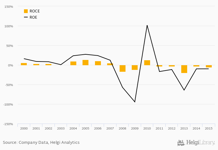 The result implies a return on equity of -9.97% and a return on invested capital of -5.73% in 2015. That is compared to an average of -22.6% and -6.99% over the last five years.