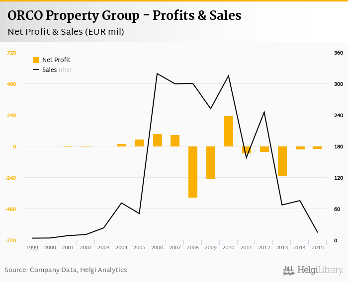 ORCO Property Group made a net profit of EUR -20.5 mil in 2015, up 13.3% compared to the previous year. Total sales reached EUR 14.0 mil, which is down 81.4% when compared to the previous year.