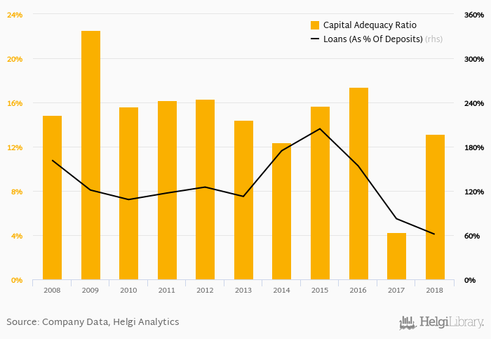 Bank's loan to deposit ratio reached 61.2% at the end of 2018, down from 82.3% when compared to the previous year. Some 10 years ago, loan to deposit ratio of the bank amounted to 162%.