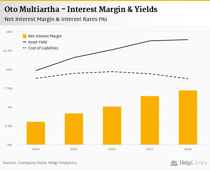 Oto Multiartha's net interest margin amounted to 7.21% in 2018, up from 6.46% compared to the previous year.