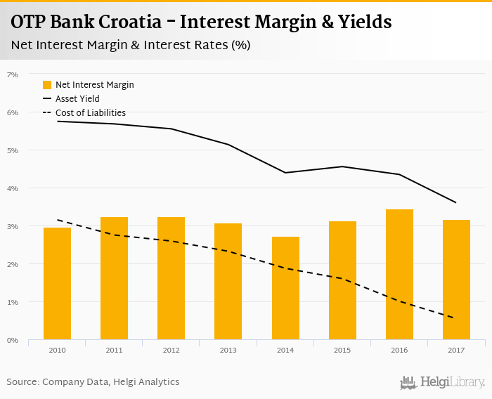 OTP Bank Croatia's net interest margin amounted to 3.16% in 2017, down from 3.45% compared to the previous year.