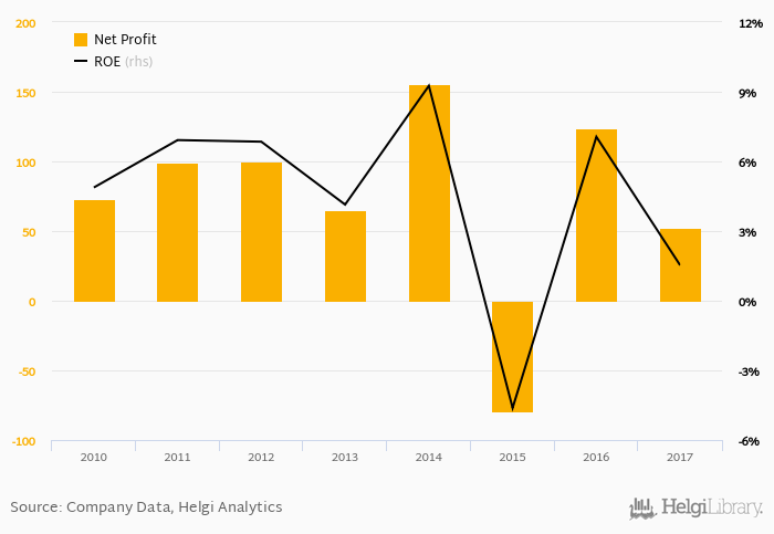 The bank generated its shareholders an average return on equity of 3.47% in the last five years with maximum at 9.26% and minimum at -4.62%