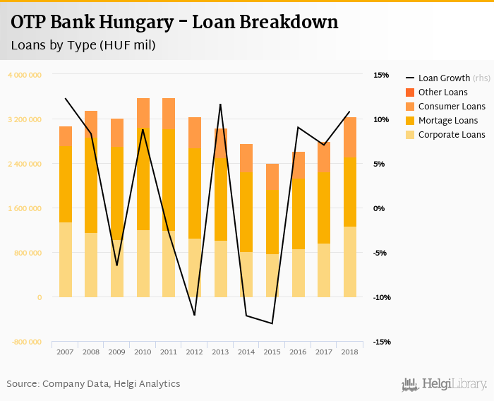 At the end of 2018, OTP Bank Hungary's loans accounted for 51.9% of total deposits and 36.2% of total assets.