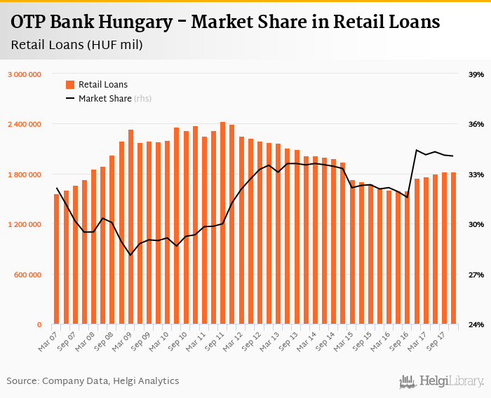 OTP Bank Hungary's retail loans reached HUF 1,823,120 mil in the fourth quarter of 2017, up 0.163% compared to the previous year.