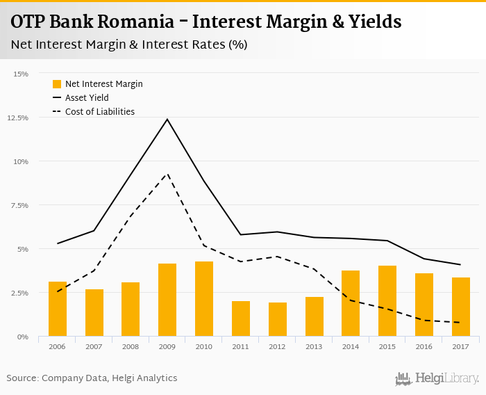 OTP Bank Romania's net interest margin amounted to 3.38% in 2017, down from 3.61% compared to the previous year.