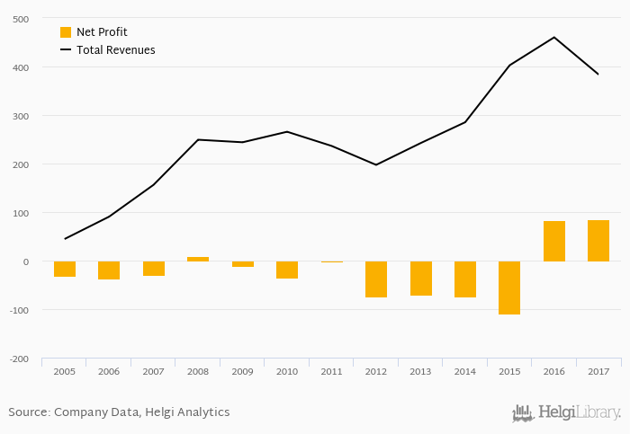 On the other hand, bank’s revenues amounted to an all time high of RON 460 mil in 2016 and an all time low of RON 44.4 mil in 2005. The average revenues in the last five years reached RON 355 mil.