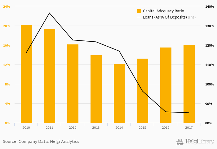Bank's loan to deposit ratio reached 85.2% at the end of 2017, down from 85.6% when compared to the previous year.
