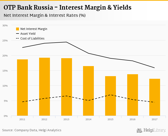 OTP Bank Russia's net interest margin amounted to 12.3% in 2017, down from 13.8% compared to the previous year.