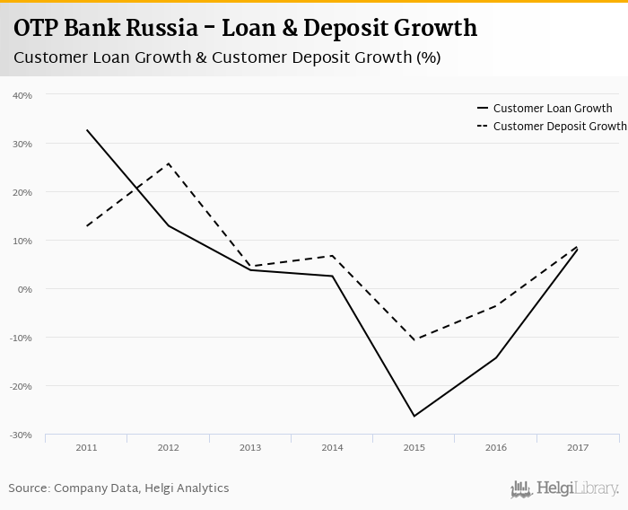 At the end of 2017, OTP Bank Russia's loans accounted for 85.2% of total deposits and 59.6% of total assets.