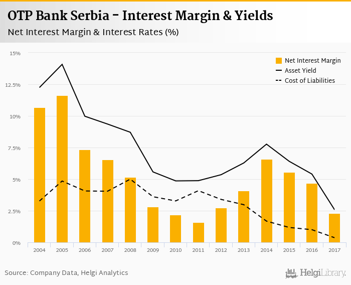 OTP Bank Serbia's net interest margin amounted to 2.28% in 2017, down from 4.67% compared to the previous year.