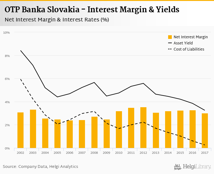 OTP Banka Slovakia's net interest margin amounted to 3.01% in 2017, down from 3.29% compared to the previous year.