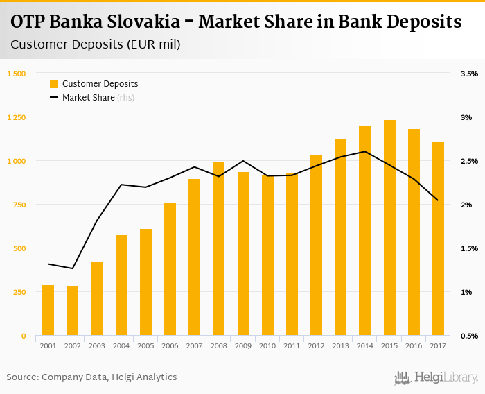 OTP Banka Slovakia's customer deposits reached EUR 1,110 mil in 2017, down 6.08% compared to the previous year.