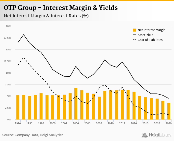 OTP Group's net interest margin amounted to 3.60% in 2020, down from 4.02% compared to the previous year.