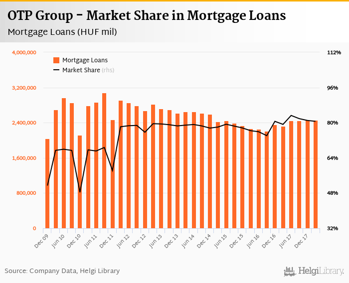 OTP Group's mortgage loans reached HUF 2,455,900 mil in 1Q2018, down 0.018% compared to the previous year.