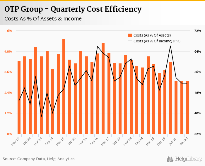 OTP Group's cost to income ratio reached 51.6% in the fourth quarter of 2020, down from 51.7% when compared to the previous quarter.