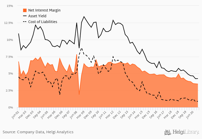 Historically, the bank’s net interest margin reached an all time high of 7.82% in 2Q2008 and an all time low of 1.89% in 3Q2008. The average margin in the last six quarters amounted to 3.68%.