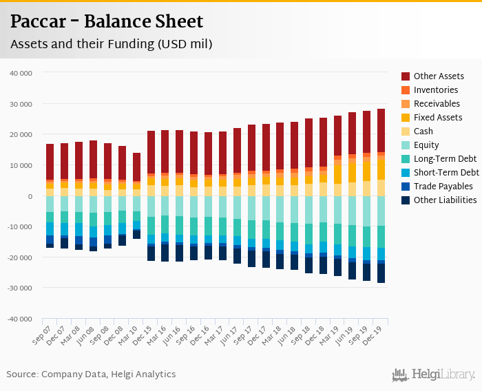 Paccar's total assets reached USD 26,406 mil at the end of 2Q2020, down 2.8% compared to the previous year.