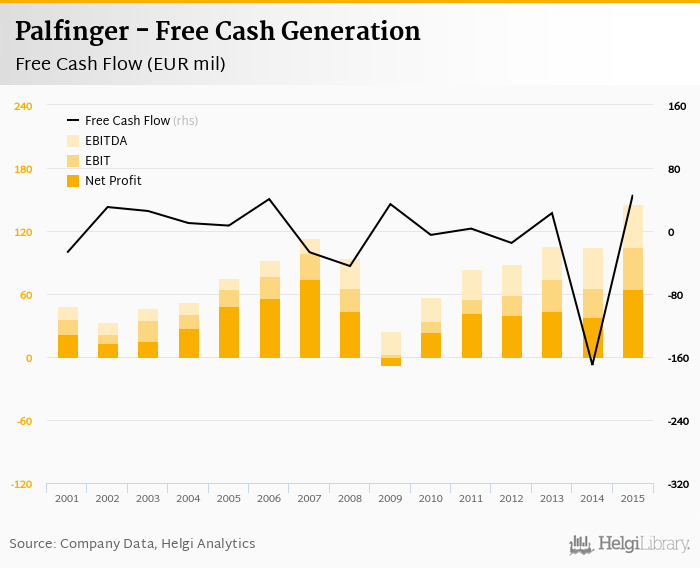 Palfinger made a net profit of EUR 64.4 mil with revenues of EUR 1,230 mil in 2015, up by 68.7% and up by 15.7%, respectively, compared to the previous year. This translates into a net margin of 5.23%.